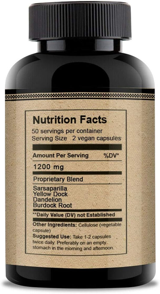 Organic Iron Pills with Sarsaparilla & Dandelion Root - 100 Pack - Vines Yard Herbal Iron Supplements