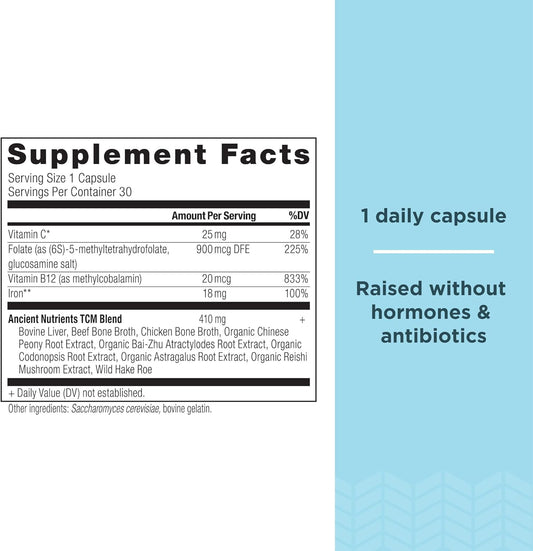 Ancient Nutrition Ancient Nutrients Iron Capsules - 18mg Iron, Adaptogenic Herbs, Enzyme Activated, Paleo & Keto Friendly