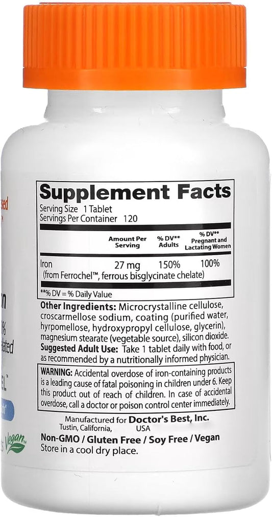 High Absorption Iron Tablet with Ferrochel for Gentle Stomach, Immune & Blood Health - 27 mg