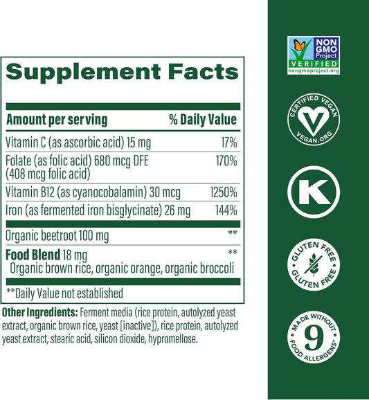 Iron-Rich Blood Builder Minis - Boost Iron Levels Naturally with Vitamin C, B12, & Folic Acid - Vegan Formula - 72 Tablets