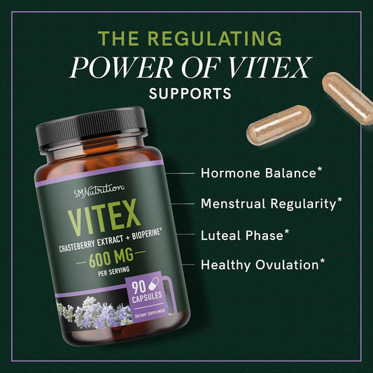 600mg Chasteberry Supplement for Women's Hormone Balance, Menopause & Acne - 90 Capsules