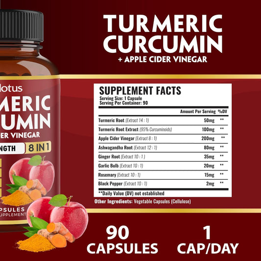 3 Month Supply Zolotus Turmeric Curcumin + Apple Cider Vinegar Capsules with Ashwagandha, Ginger, Garlic Bulb, 95% Standardized Curcuminoids for Joint & Absorption Support