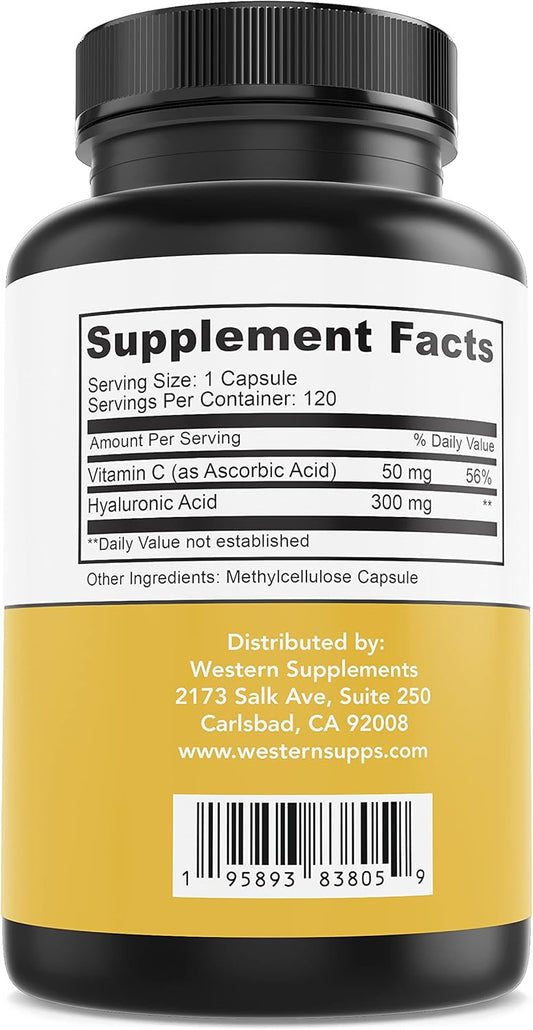 300mg Pure Hyaluronic Acid Supplement with Vitamin C - 3 Month Supply for Healthy Skin & Joints