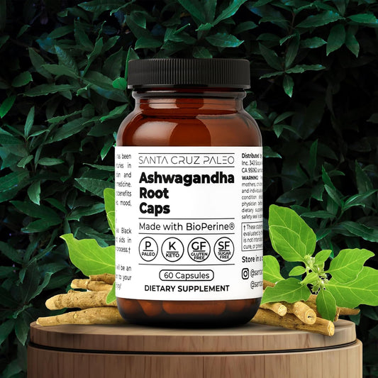 600mg Santa Cruz Paleo Ashwagandha Capsules with BioPerine for Energy, Focus, Relaxation - Gluten Free, Keto, Sugar Free - 60 Capsules