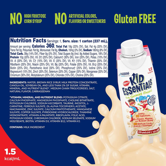24 Pack BOOST KID ESSENTIALS 1.5 Strawberry Splash 8 Fl oz - Nutrient-Rich Drink for Kids