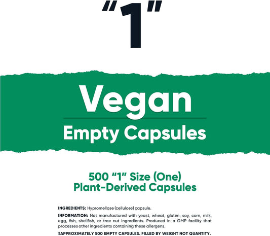 500 Clear Size 1 Vegan Empty Plant-Based Capsules - Nutricost Kosher, Halal, Non-GMO, Soy and Gluten Free