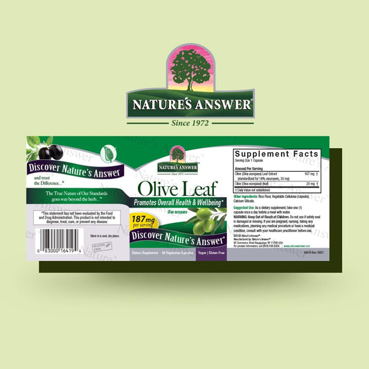 60-Count Nature's Answer Oleopein Olive Leaf Capsules for Good Health & Well Being, Alcohol-Free, Gluten-Free & Kosher