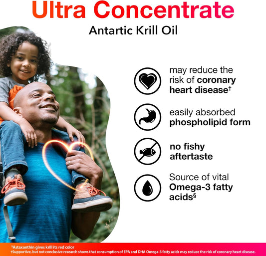 Ultra Strength Antarctic Krill Oil Supplement with Omega-3s, EPA, DHA, Phospholipids, Choline & Astaxanthin for Heart, Joint, and Brain Support - 60 Softgels