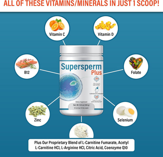 Male Fertility Supplement with L-Carnitine and L-Arginine for Optimal Sperm Count and Volume - 1 Month Supply of Powder - Preconception Formula