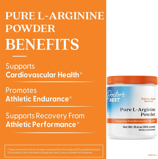 Pure L-Arginine Powder for Cardiovascular Health - Non-GMO, Gluten-Free, Soy-Free, Vegan - 10.6 oz (300g)
