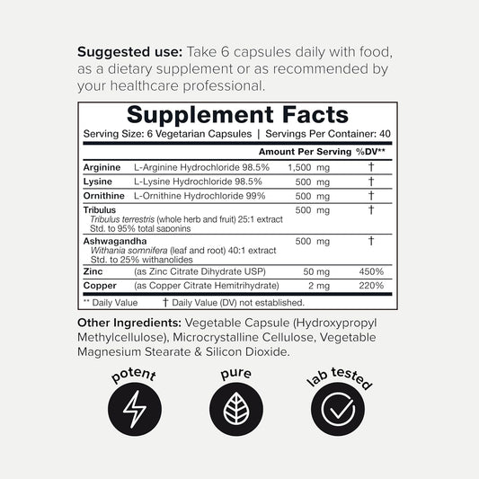 12-in-1 Ultra Test Capsule Complex with L-Arginine, Fadogia Agrestis, Tribulus Terrestris, Maca Root, Beetroot, L-Citrulline, Creatine - 90-Day Supply - USA Made