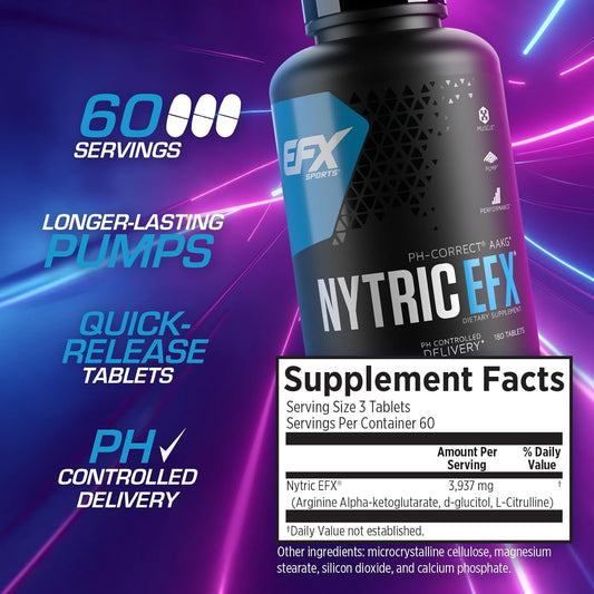 Nytric EFX Pre-Workout Pills | pH Balanced AAKG Arginine & Citrulline | Enhanced Muscle Pumps | 60 Servings, 180 Tablets