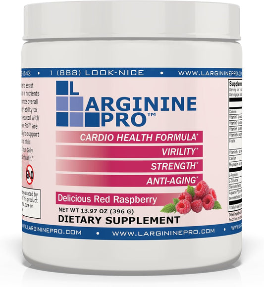 Raspberry Flavored L-Arginine Supplement Powder with 5,500mg L-arginine and 1,100mg L-Citrulline | Pack of 6 Jars