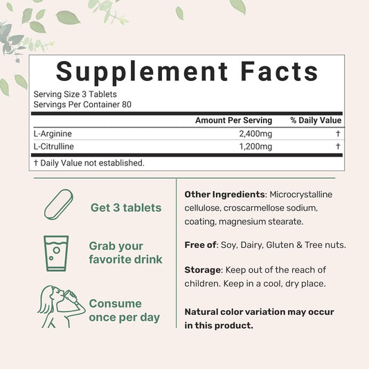 High Strength Nitric Oxide Supplement 3,600mg 240 Tablets | L-Arginine + L-Citrulline Complex for Muscle, Energy, Heart Health | Non-GMO, Gluten Free