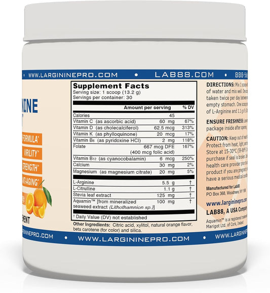 L-ARGININE PRO Powder Drink Mix | 5,500mg L-arginine & 1,100mg L-Citrulline | Orange Flavor