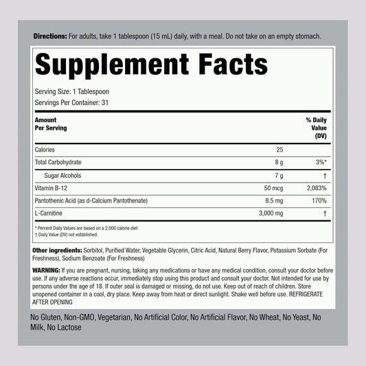 Piping Rock L-Carnitine Liquid Supplement 3000mg Berry Flavor for Advanced Athletes - Non GMO & Gluten Free