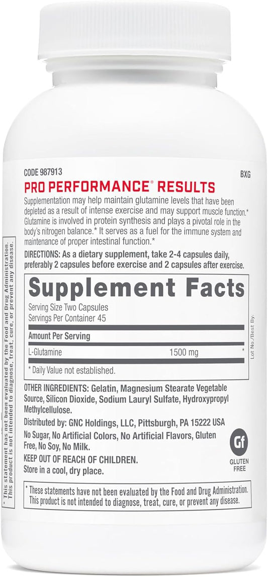 90 Capsules of GNC Pro Performance L-Glutamine for Enhanced Muscle Recovery