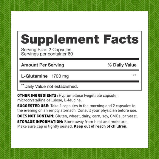 500mg L-Glutamine Supplement - 120 Capsules - Support Muscle Recovery, Immune System & Maintenance