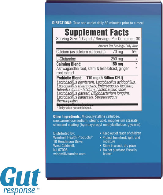 Digestive Aging Slow Down Probiotic with Ashwagandha, L-Glutamine - Non-GMO, Gluten-Free, Vegan - 5 Billion CFU - 30 Caplets