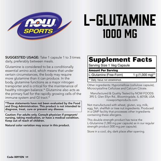 Now Foods L-Glutamine 1000 mg - 240 Capsules for Muscle Recovery and Immune Support