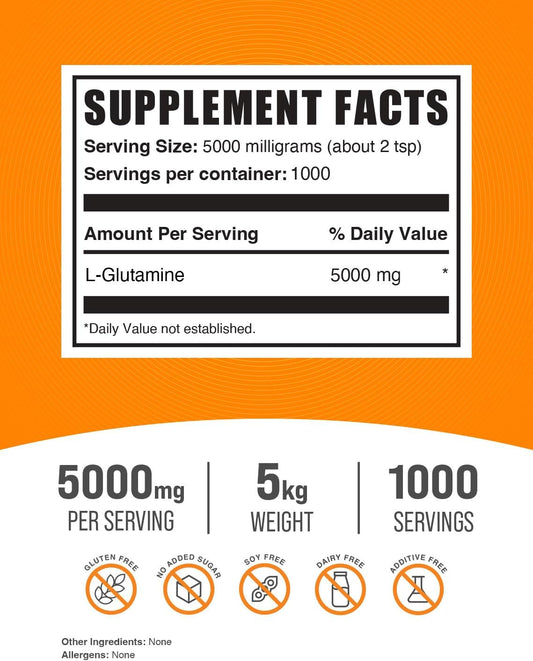 BulkSupplements.com L-Glutamine Powder - High Quality 5000mg Supplement, Unflavored & Gluten Free, 5kg (11 lbs) - Pack of 5