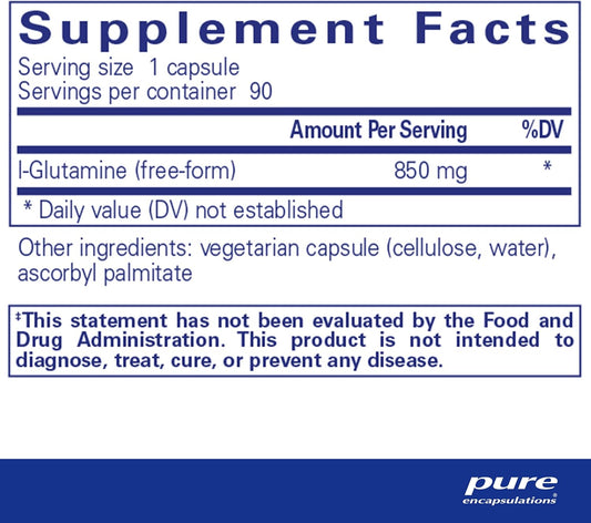 Pure Encapsulations L-Glutamine 850 mg Capsules for Immune, Digestive, Gut Health, Metabolism, and Muscle Support - 90 Count