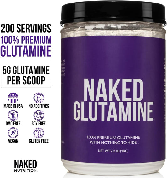 1000g Naked Nutrition L-Glutamine: 200 Servings, Made in USA, Vegan, Non-GMO, Gluten & Soy Free - Muscle Support & Protein Synthesis Boost