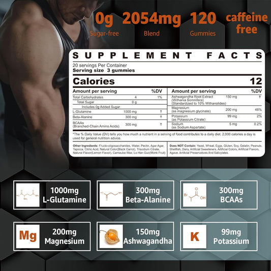 Nextdia L-Glutamine Exercise Gummies 1000mg - Promotes Muscle Recovery & Growth, Enhances Performance - Beta-Alanine, BCAAs, Magnesium, Ashwagandha - 2 Pack, Extra Chewy