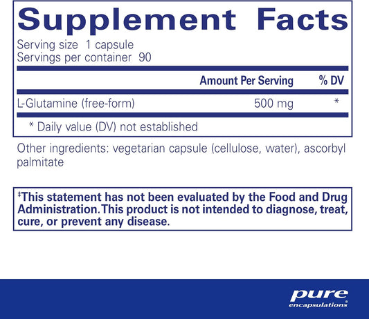 Pure Encapsulations L-Glutamine 500 mg - Support for Immune System, Digestive Health, Metabolism, and Muscle - Free-Form L-Glutamine - 90 Capsules