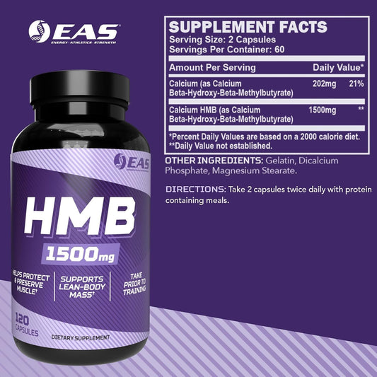 1500mg EAS HMB Capsules for Lean Muscle Support & Recovery - 120 Count