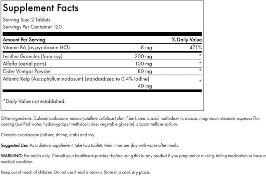 Swanson Lecithin Kelp B-6 & Cider Vinegar Tablets - 240 Count Bottle