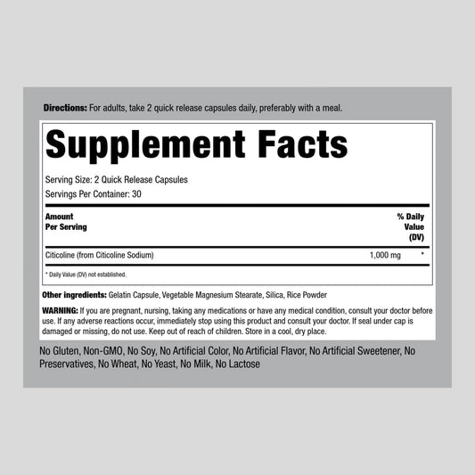 1000mg CDP Choline Citicoline Capsules - 60 Quick Release Non-GMO Gluten Free Supplement for Men and Women