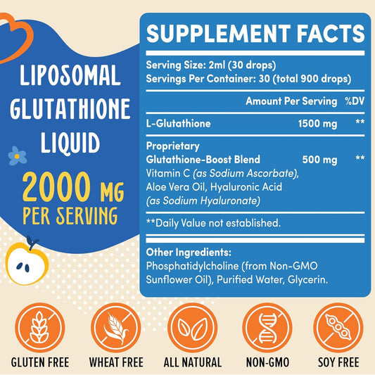 2000MG Liposomal Glutathione Liquid Supplement for Immune System Support, Aging Defense, and Detox - 2 FL.OZ, Non-GMO, Highly Absorbable Antioxidant Formula