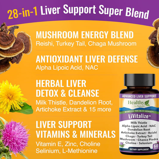 28-in-1 Liver Support Supplement with Milk Thistle, Dandelion Root, NAC, Artichoke Extract, Reishi, Chaga, and Turkey Tail Mushroom - Liver Cleanse & Detox Formula (2 Pack)