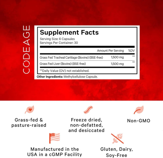 Freeze Dried Grass Fed Beef Cartilage Supplement - Non-Defatted Bovine Tracheal & Liver Pills - Pasture Raised Argentina Beef Vitamins - Non-GMO - 180 Capsules