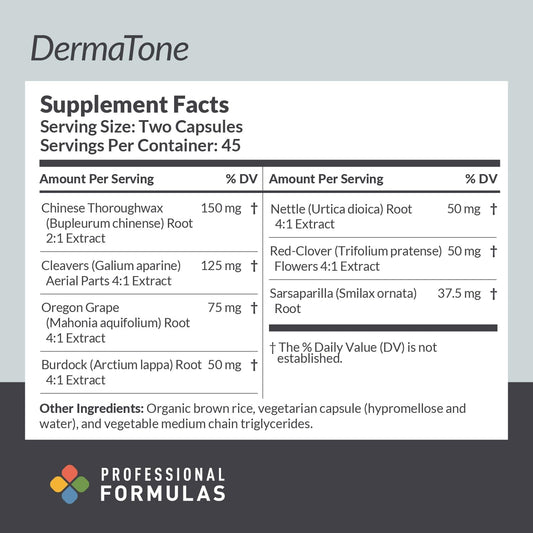 Professional Formulas DermaTone for Liver & Lymphatic Health - Vegetarian CapsulesVendor:PROFESSIONAL COMPLEMENTARY HEALTH FORMULASRegular price $126.60 AUDRegular priceUnit price / per-
