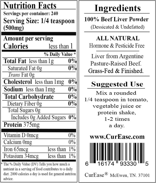 Argentine Grass Fed Beef Liver Powder - Undefatted - 4.2oz - 240 Servings