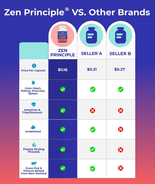 Grass Fed Beef Organ Supplements - Desiccated Liver, Heart, Kidney, Pancreas, Spleen, Intestine, Tripe/Stomach - Zen Principle
