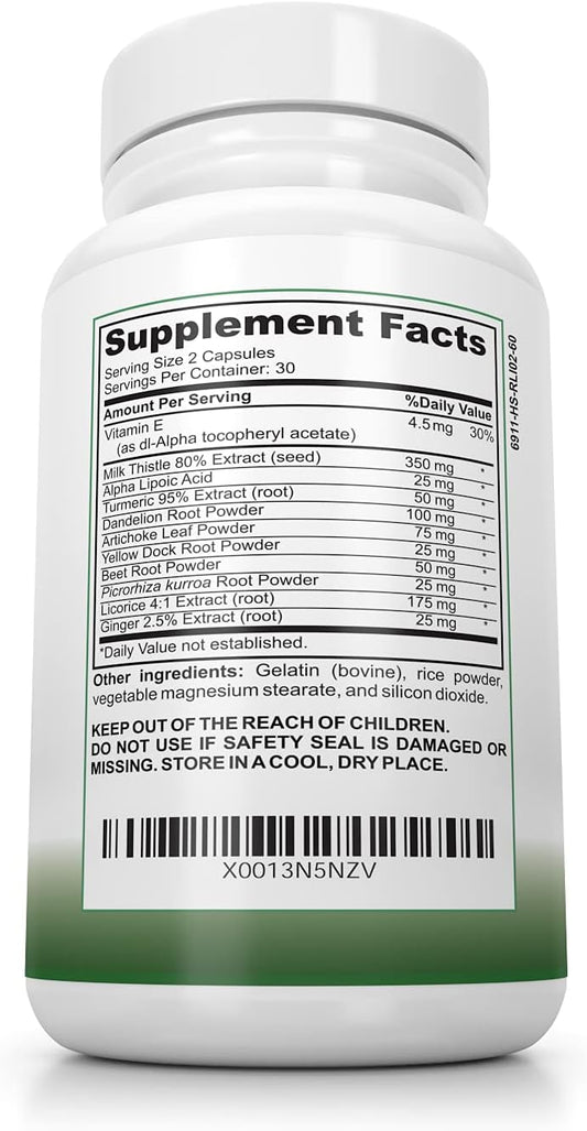 Liver Support Supplement - Detox & Repair with Milk Thistle, Turmeric, Dandelion, Artichoke - 60 Capsules for Fatty Liver Protection