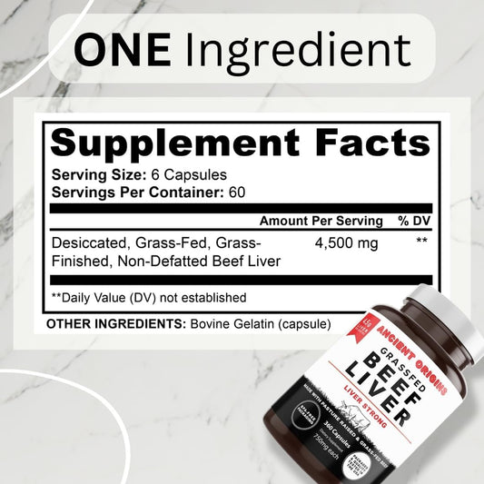 Organic Grass Fed Beef Liver Capsules - 180 Count - Rich in Iron, Vitamin A, B Vitamins, and Collagen - Promotes Energy, Detox, Wellness - Ancestral Paleo Living - Ion Supplements