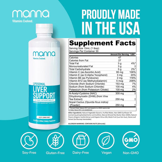 Manna Liposomal Liver Support Capsules - Detox & Repair Supplement for Men & Women - Liver Cleanse Vitamins