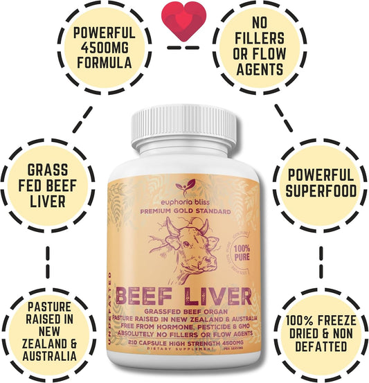 Desiccated Grass Fed Beef Liver Capsules | 210 Quick Release Capsules (750mg) | Non-GMO Liver Supplement