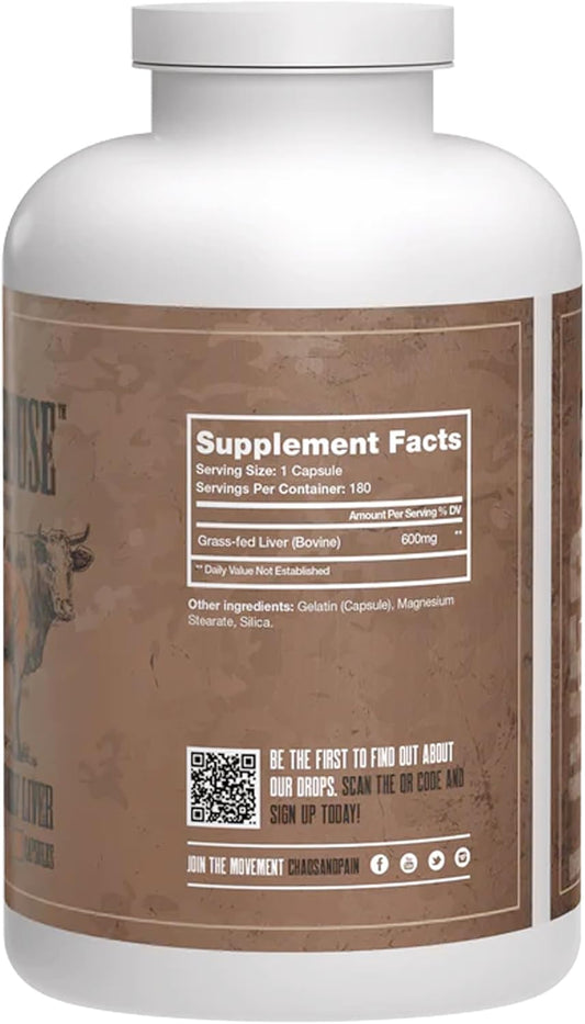 Non-GMO Grass-Fed Beef Liver Capsules for Energy, Wellness, Detox, Digestion, Immunity - 180 Capsules