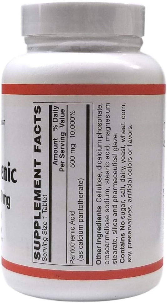 100 Tablets of Pantothenic Acid by Holistic Health International, LLC for Optimal Health