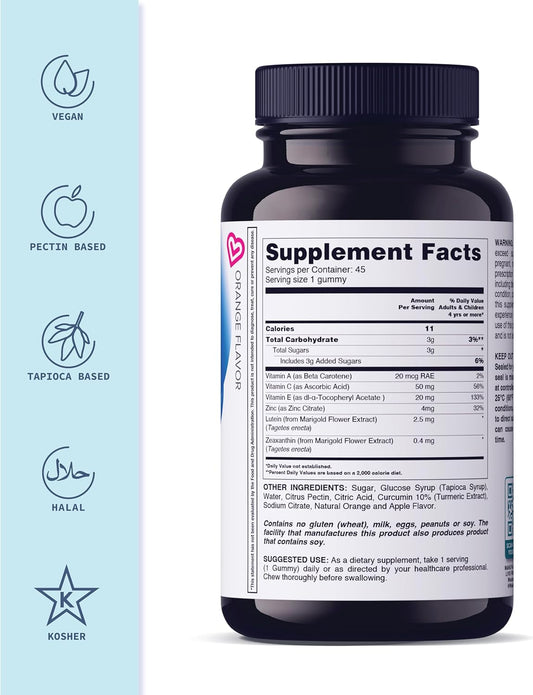 Lutein Gummies with Zeaxanthin & Vitamin A - Eye Health and Brain Support for Kids and Adults - Orange Flavor - 60Ct