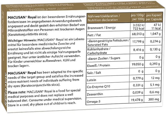 Eye Health Supplements for Good Vision | MACUSAN Royal Dry Eye Tablets with Lutein, Zeaxanthin & Omega-3 | Vitamin & Mineral Pills for Healthy Macula