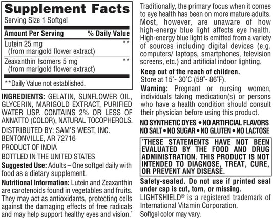 Lutein & Zeaxanthin Softgels for Eye Health - 25mg Lutein, 5mg Zeaxanthin, 150 Count - Vision Support & Blue Light Protection
