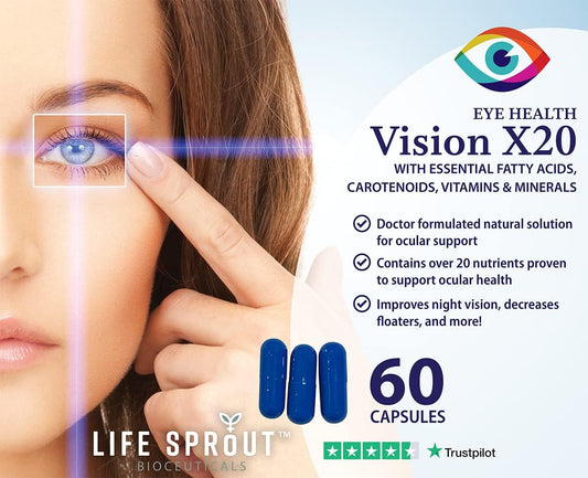 Vision X20 - Eye Health Supplement with Lutein, Beta-Carotene, Bilberry, Niacin & Glutathione by Life Sprout Bioceuticals