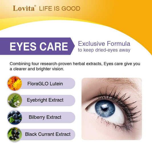 Eye Health Support Supplement with FloraGLO Lutein, Black Currant, and Eyebright - 60 Capsules for Vision, Eye Strain, and Dry Eye