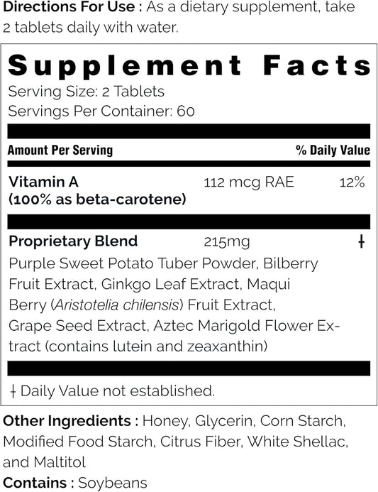 Eye Clear: Blueberry & Ginkgo Vision Supplements for Adults - 120 Tablets